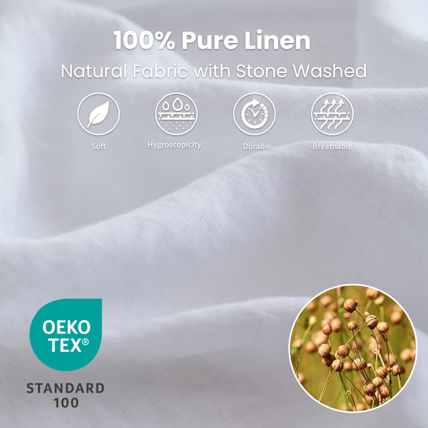 - ??MATERIAL??Made of 100% Premium Quality French Flax Fabric with Pre Washed, 160 GSM (For make the fabric soft, the pre-washing process will cause an uncontrollable shrinkage, so the final GSM will have 5% more or less deviation). Our linen products have been certified according to STANDARD 100 by , which is eco-friendly. The flax bedding can bring you a healthier life, durable for a long period.