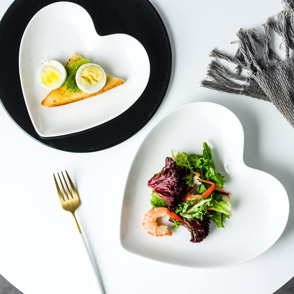 9 Inches Single Color Series Heart Shape Ceramic Dinner Plates(1 Piece)-White