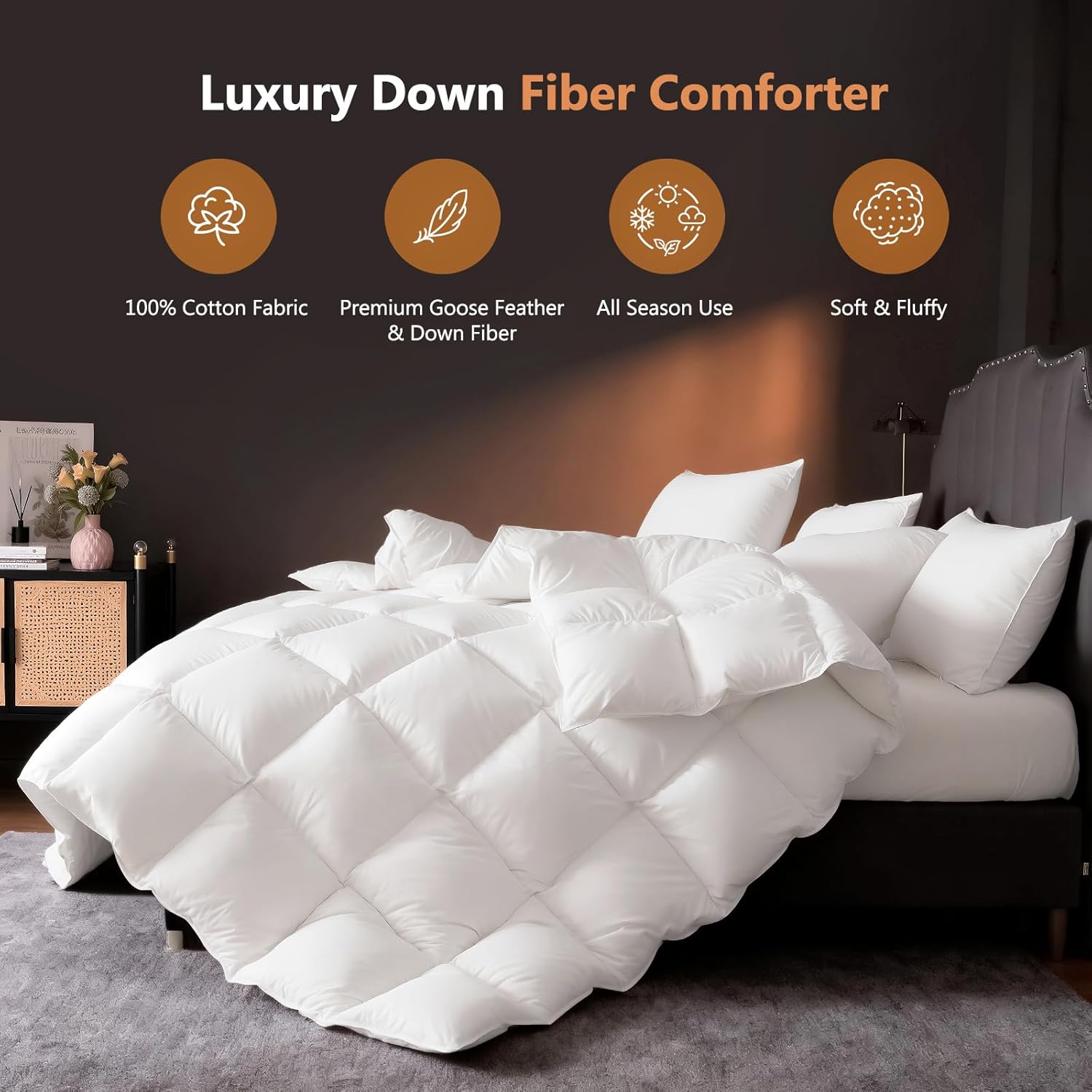 - All-Season Comforter: The classic style of the down makes it suitable for all weather conditions to ensure a blissful sleep every night.