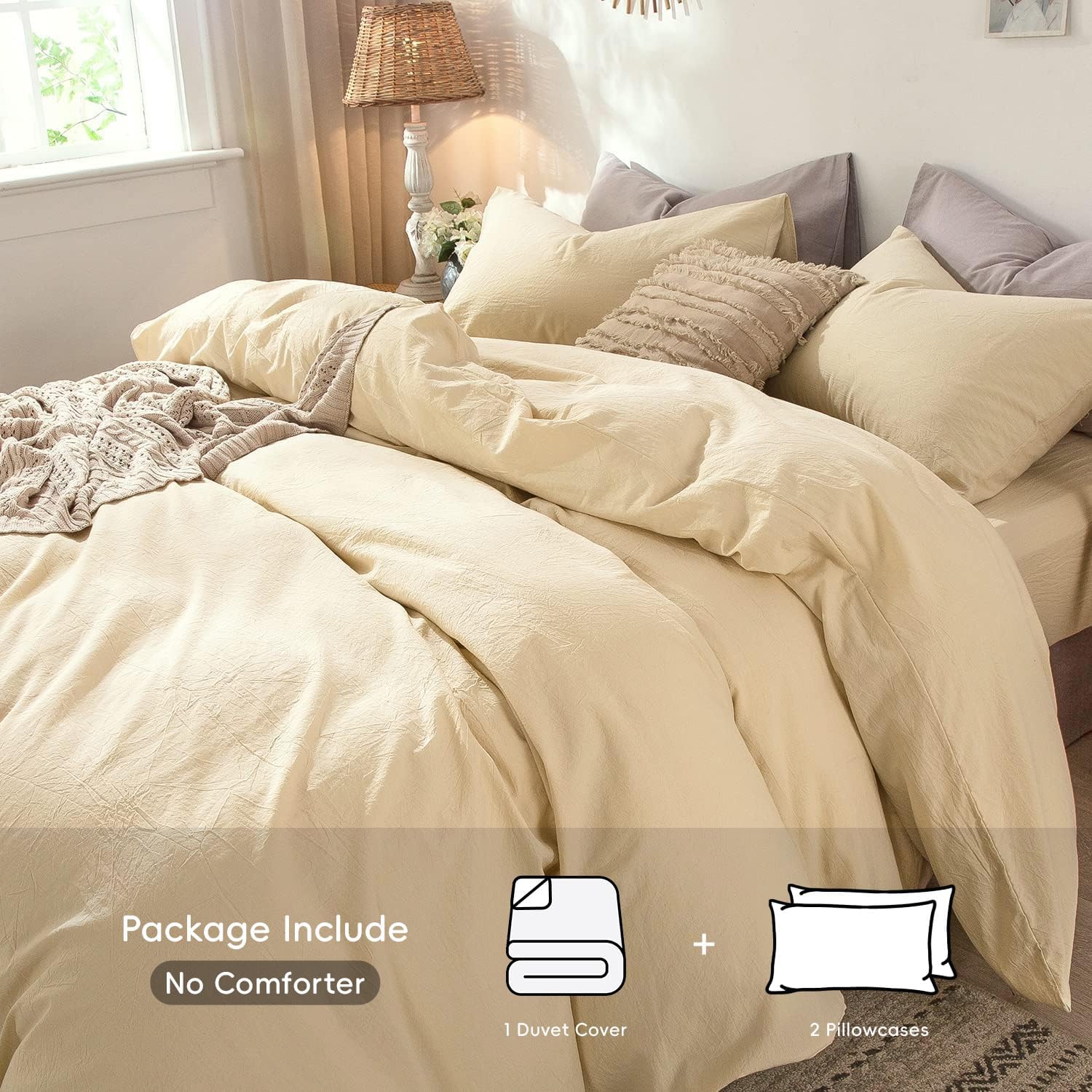 • Great Texture & Comfort: Looks like linen, feels like cotton, with a lived-in, slightly wrinkled look, which offers that feeling of staying at a nice resort where the duvet cover sets are always crisp, clean and comfortable. The relaxing look of this light yellow bedding set and the cool texture make it hard to get out of bed.