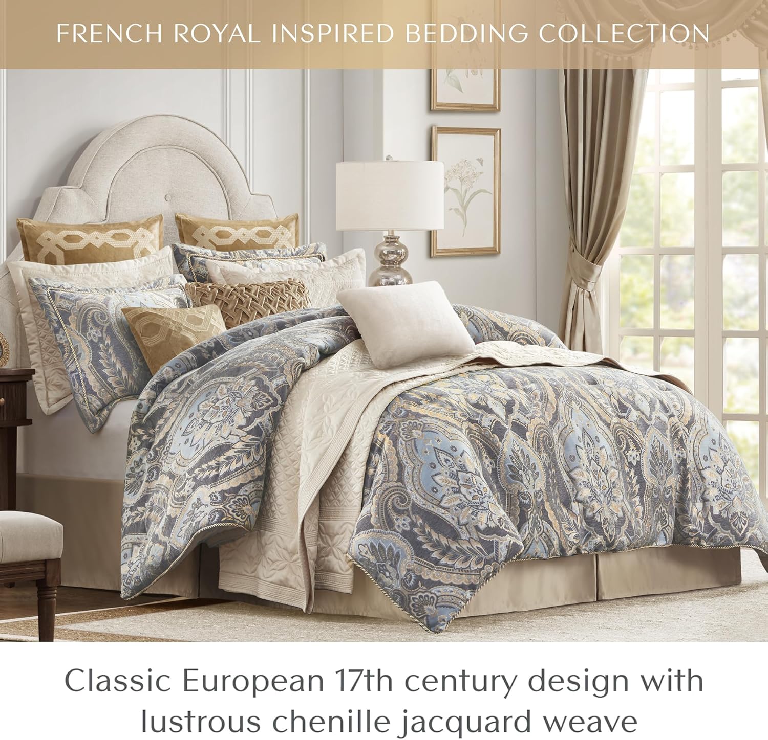 - Experience opulence with our Luxurious Bedding Set – a timeless blend of French 17th century inspired design. Immerse yourself in the lustrous comfort of a damask jacquard weave, evoking the classic opulent lifestyle with a touch of modern elegance