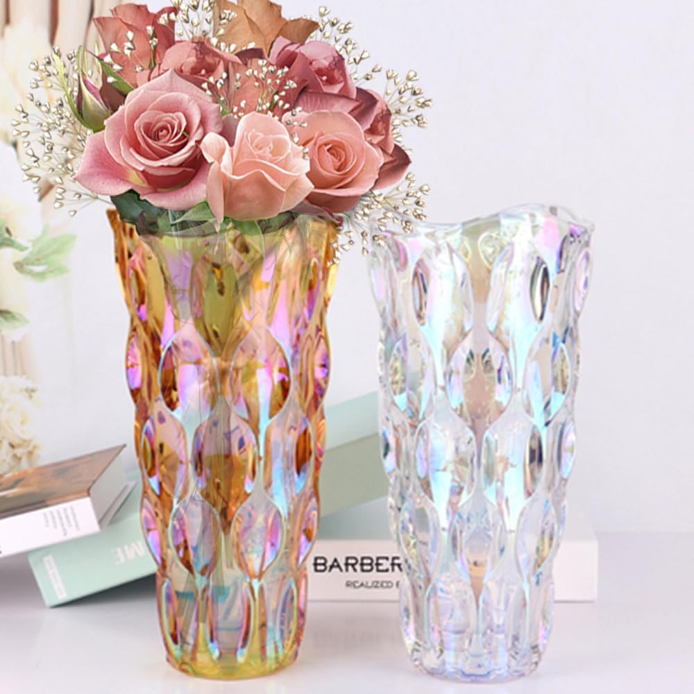 • This is a beautiful glass vase. It is very firm and not fragile.When light hits it, it shimmer and twinkles.