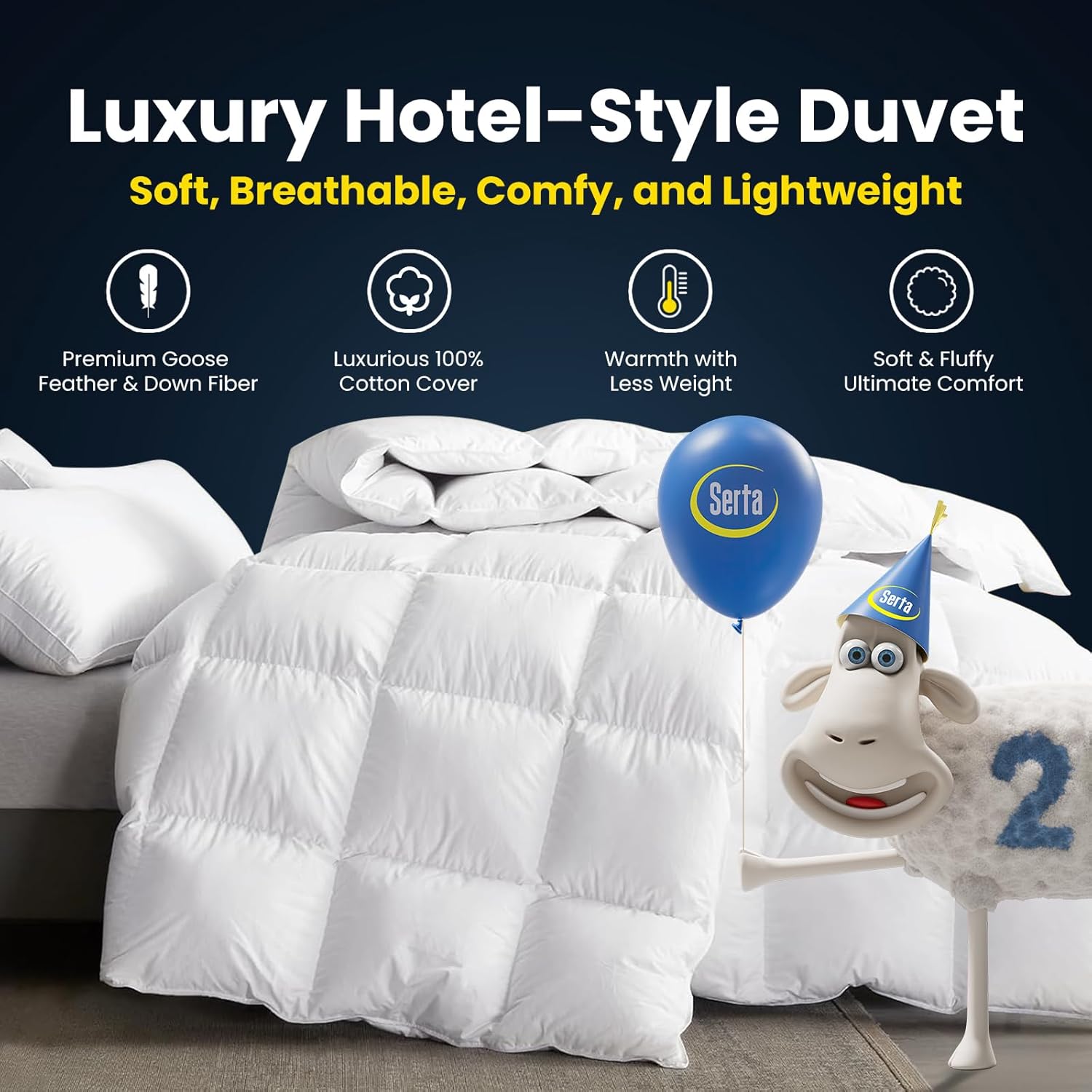 - EXTRAORDINARY MOISTURE WICKING??Filled with Treated premium white goose down and feathers making our down duvet moisture repellent, quick-drying, and 3 times more breathable than regular down