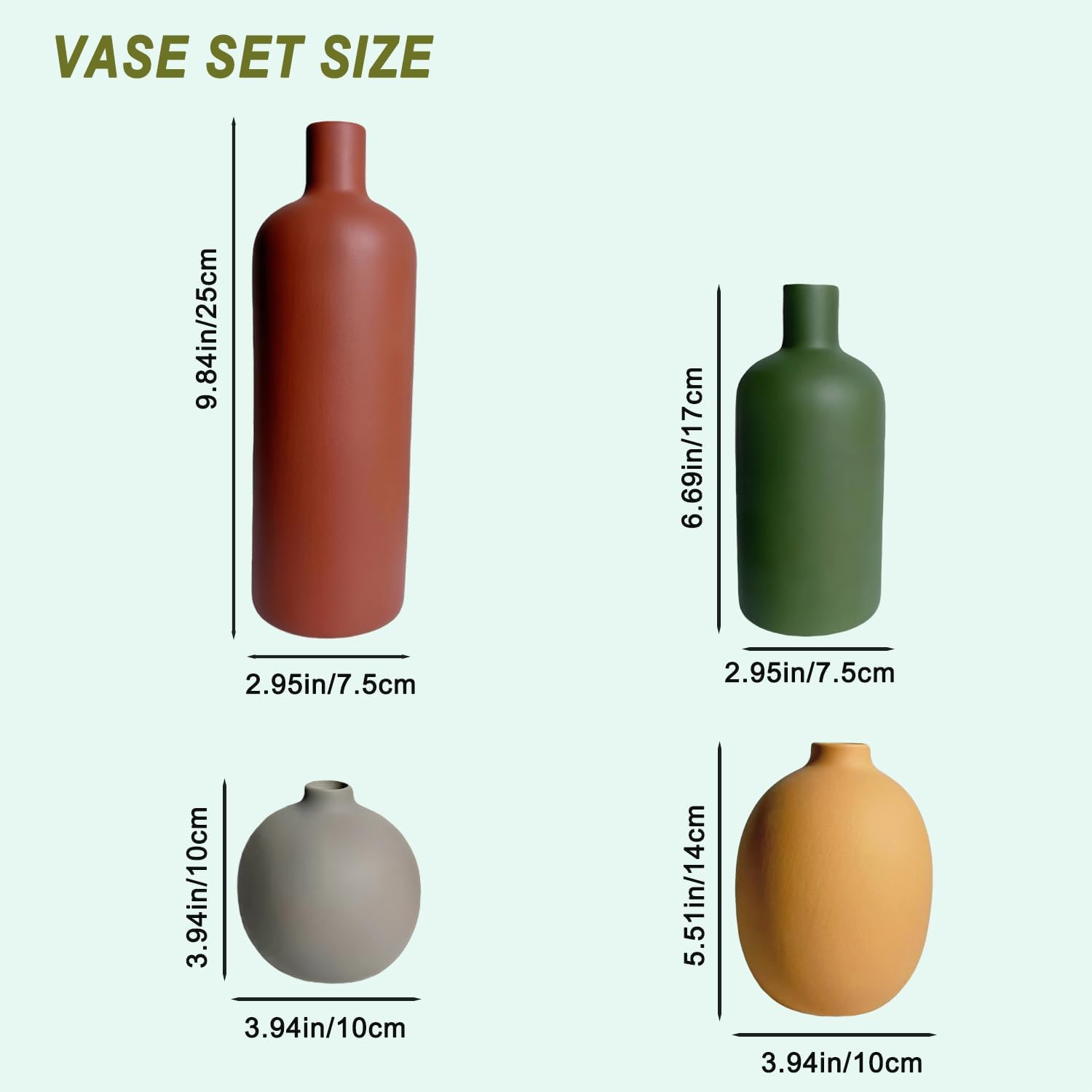 • [Premium Ceramic Craftsmanship] Crafted by with high-temperature fired ceramic, this 4-piece vase set features smooth matte finishes and neutral earth tones that seamlessly complement modern, Scandinavian, or bohemian interiors.