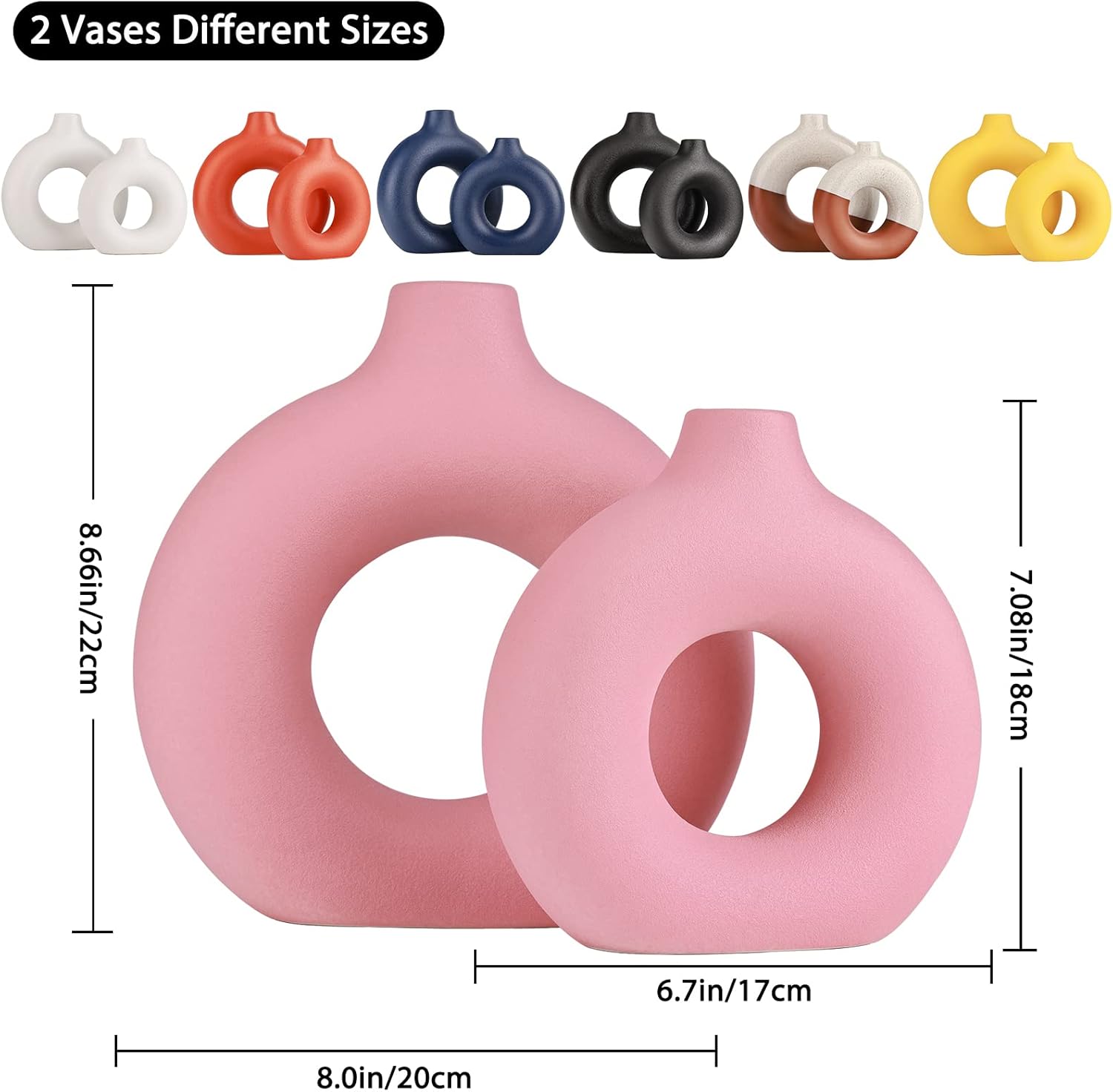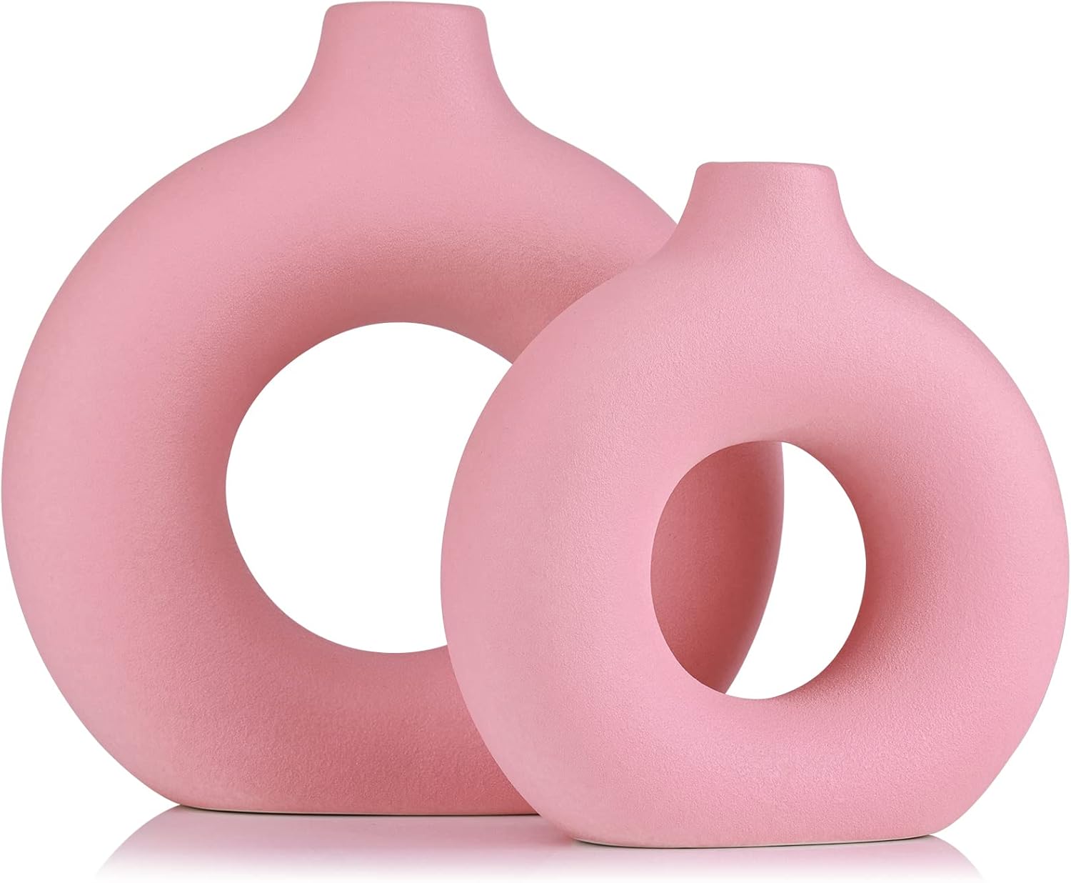 • [Matte pink decor] if you’re looking for a way to add a little color to your interior, our pink donut vase is a great solution. This modern hollow vase is the perfect size and perfect for flowers themed decorating, whether you are decorating your living room, bedroom, dining room, dining table ,mantel, entryway and more; decorative vase that will wow your friends. The donut vase is a marker to show your inner confidence and sunshine.