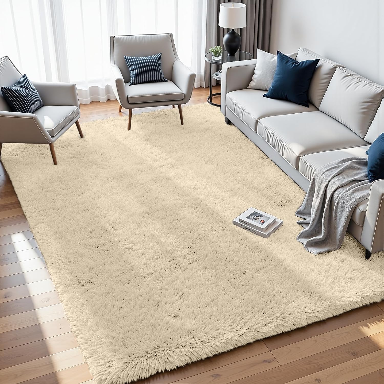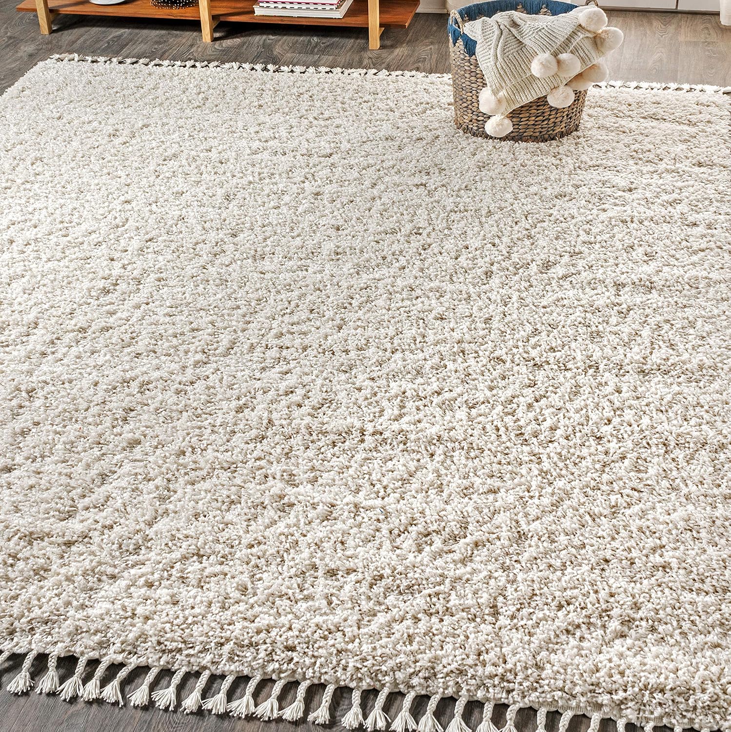 - Soft cream shag with twisted fringe adds texture